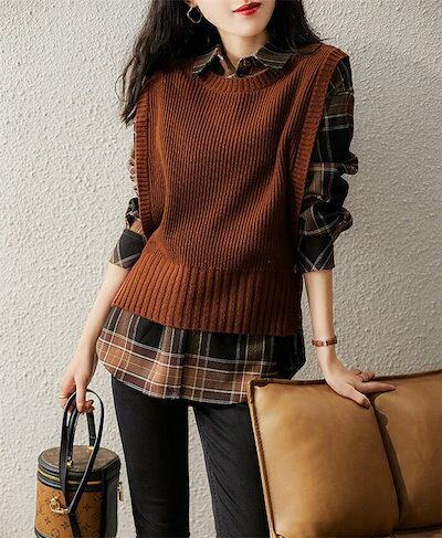 ニット ベスト レディース ニットベスト ジレ クルーネック トップス ノースリーブ リブ編み ニットトップス セーター 重ね着 ニットセーター 春 秋 アウター インナー 無地 スリット入り ショー