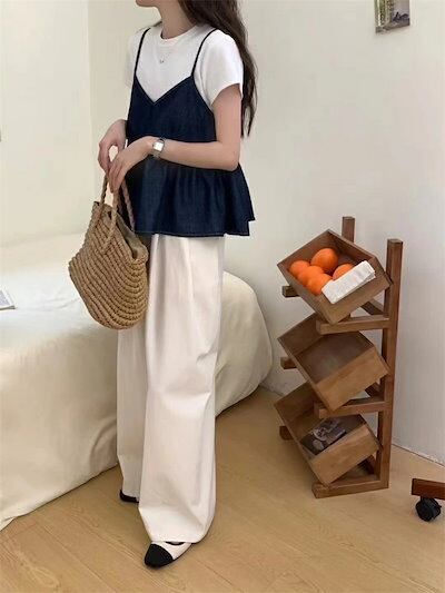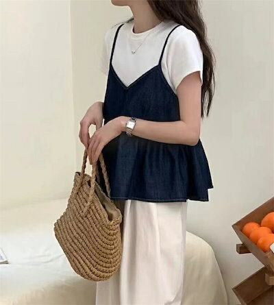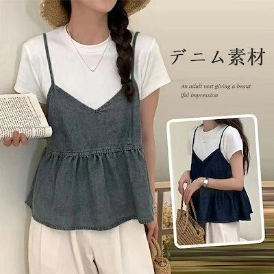 ベスト レディース デニム ショート丈 レディース 春夏 薄手 デニムベスト ショート フレア 可愛い ショートベスト 女の子 レトロ 重ね着 ゆったり ペプラム フレアベスト ふんわり レイヤード