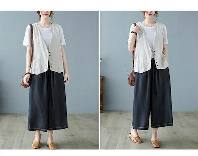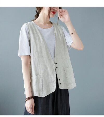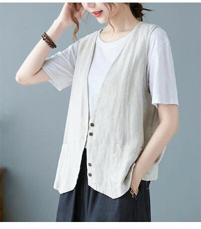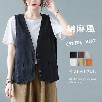 ベスト ジレ レディース ノースリーブ アウター 春 トレンチベスト ジレンチ トップス コート リネン 綿麻風 レイヤード 前開き 無地 ショート丈 レディースジレ 春 秋 夏 大きいサイズ ゆった