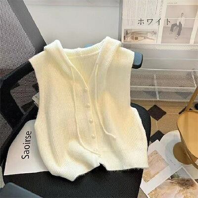 ベスト パーカー レディース ニットベスト 秋 前開き ベスト フード付き 春 秋冬 ニットパーカー フード付きパーカー ノースリーブ ゆったり ベスト 重ね着 レイヤード ショート丈 アウター お洒