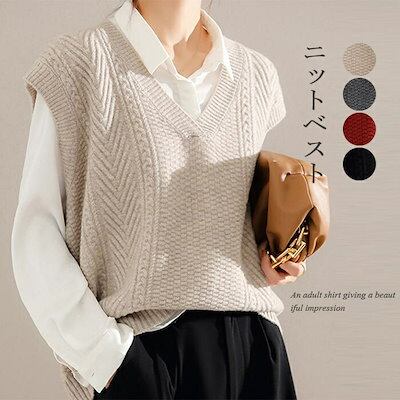 ニット ベスト レディース ニットベスト ジレ vネック ニットセーター セーター ノースリーブ フレンチスリーブ ニットトップス 重ね着 ショート丈 春 冬 アウター インナー 無地 ショート レイ