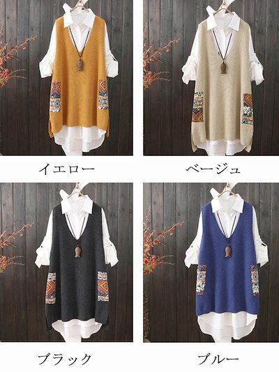 ニットベスト レディース 春 秋 ロングベスト ノースリーブ Vネック スリット ニット ベスト セーター 前後差 チュニック 重ね着 レイヤード コーデ トップス ドッキング プルオーバー ゆったり