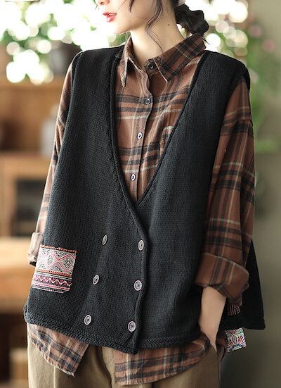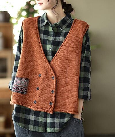 ニットベスト レディース 春 秋 ニット ベスト ノースリーブ Vネック セーター 無地 トップス 前開き ボタン ジレ ドッキング 重ね着 レイヤード 前開きベスト コーデ ゆったり カジュアル ニ