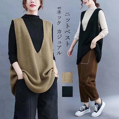 ニットベスト レディース 春 秋 ニット ベスト ノースリーブ Vネック トップス 重ね着 レイヤード コーデ セーター 無地 プルオーバー ゆったり カジュアル ニットセーター シンプル アウター