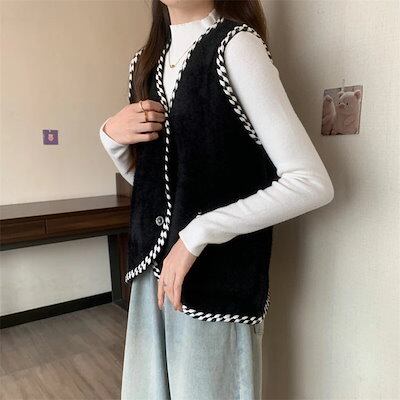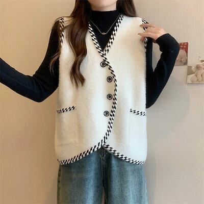 ニット ベスト Vネック レディース 大きいサイズ ノースリープ トップス 前開き 無地 カジュアル ゆったり 着痩せ 体型カバー 春 秋 冬 秋服 お洒落 コーデ 重ね着 レイヤード 着回し 通勤