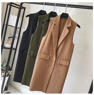 テーラードベスト ロングベスト ライトアウター レディース ノースリーブ オシャレ 春 秋 前開き ジレ おしゃれ ジレベスト 大きいサイズ トップス 着回し ノースリーブ カジュアル レイヤード 無