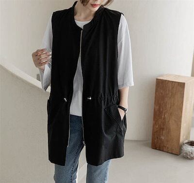 ジレ ベスト レディース 春夏 おしゃれ 前開き ジレ レディース 春 夏 秋 バンドカラー トップス ノースリーブ ノースリーブジャケット ファスナー ゆる ゆったり 体型カバー 大きいサイズ 大人