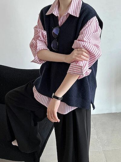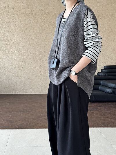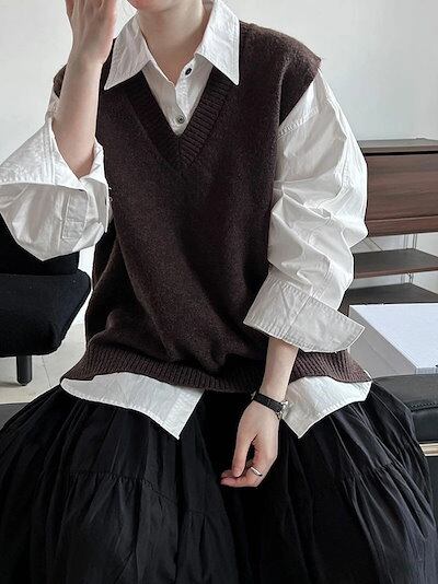 ニット ベスト ニットベスト レディース Vネック ジレ ジレベスト 無地 バックボタン スリット トップス ノースリーブ 重ね着 レイヤード ゆったり 着?せ 大人 シンプル カジュアル 春 秋