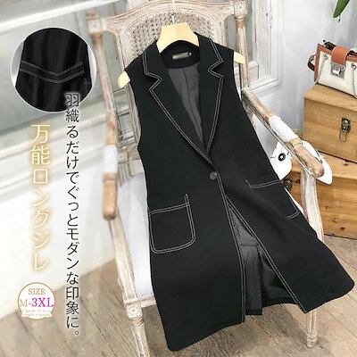 ステッチ ロングジレ ジレ レディース 春秋 テーラードベスト ロングベスト ノースリーブ バックリボン付き オシャレ 春 夏 秋 前開き おしゃれ ジレベスト 大きいサイズ トップス 着回し シンプ