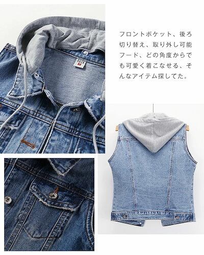 デニム ベスト レディース 春 ジレ ベスト レディース 春夏 ベスト レディース おしゃれ ベスト 春 デニム 前開き トップス ベスト Gジャン ジージャン フード付き 取り外し可能 大きいサイズ