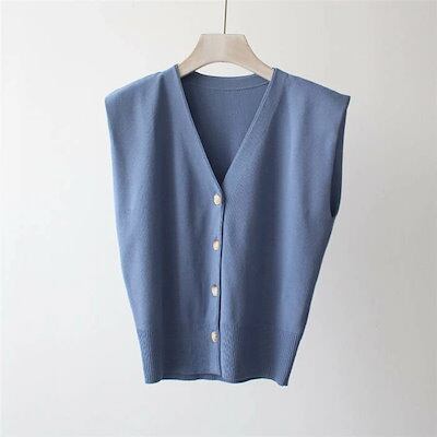 前開き ニット ベスト レディース コーデ 春 夏 秋 サマー ベスト ニットトップス vネック ニットベスト ショート丈 着回し ニット トップス 体型カバー シンプル カジュアル 上品 きれいめ