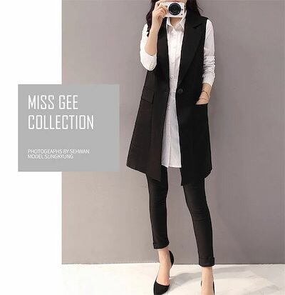 ロングジレ ジレ レディース 春秋 テーラードベスト ロングベスト ノースリーブ オシャレ 春 夏 秋 前開き おしゃれ ジレベスト 大きいサイズ トップス 着回し シンプル カジュアル レイヤード