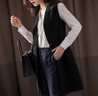 ロングジレ 春 ジレ ベスト レディース 春秋 テーラード ベスト テーラードベスト サマー ベスト ロング丈 オシャレ フォーマル 前開き 大きいサイズ おしゃれ ジレベスト トップス 着回し レイ