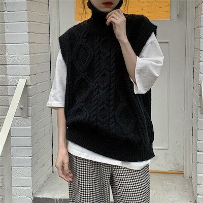 ニット ベスト ハイネック レディース 秋冬 タートルネック ニットベスト 春秋 ケーブル編み 秋 冬 春 ニット トップス ニットウェア 着回し おしゃれ ノースリーブ 可愛い 大人 カジュアル レ