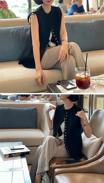 テーラードベスト ノーカラー ジレ ベスト レディース ジレ レディース 春 夏 秋 冬 ベスト レディース 前開き 多ボタン ベスト レディース 春夏 トップス ベスト ミドル丈 ミドルジレ サマー