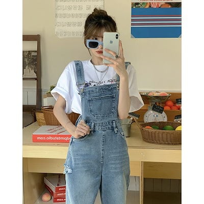 2025春服 韓国 減齢 ズボンのすそに穴が開いたカウボーイストラップモップ 長ズボン 女 コーデ完成 サロペット ワイドパンツ 韓国ファッション デニム