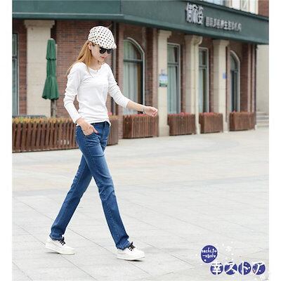 デニムパンツ レディース ダメージ ハイウエスト ロングパンツ ストレッチ コットン ジーパン ゆったり ジーンズ スリム パンツ 美脚