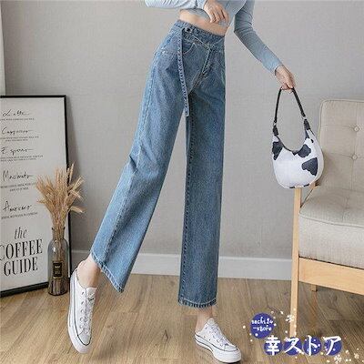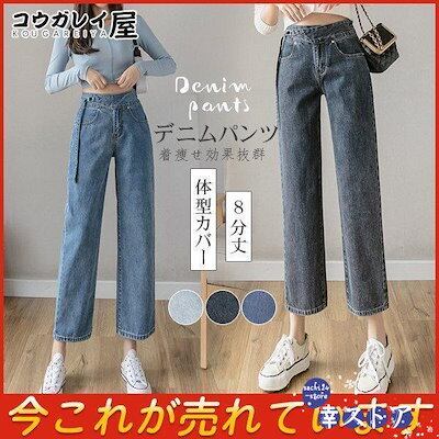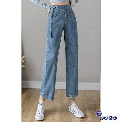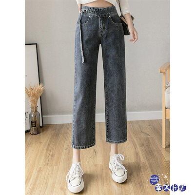 新作 ジーンズ レディース デニムパンツ ストレート ジーパン 8分丈 ワイドパンツ デニムズボン ゆったり 着痩せ 春夏秋 体型カバー 低身長向け