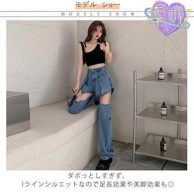 デニムパンツ 2way ショートパンツ ロングパンツ レディース セパレート デニムパンツ ストレートパンツ ジーパン ジーンズ 無地 ゆったり 体型