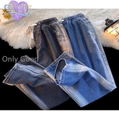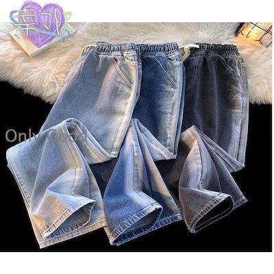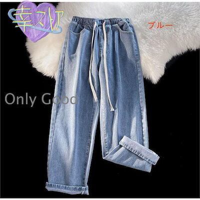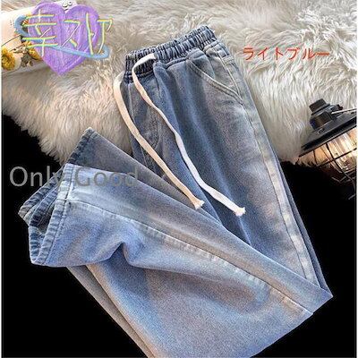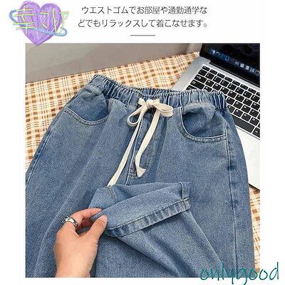 デニムパンツ ウエストゴム レディース 大きいサイズ ストレート ゆったり 秋 夏 春 冬 ワイドパンツ 体型カバー 着痩せ ボ ジーンズ ジー