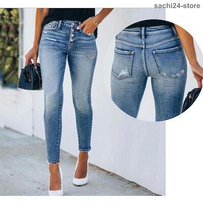 スキニーパンツ レディース デニム 細身 ジーンズ ストレッチ 大きいサイズ 10分丈 ジーパン 美脚 ボトムス スリム 伸びる 無地
