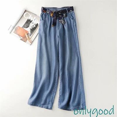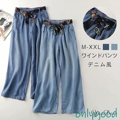 ワイドパンツ レディース デニムパンツ ガウチョパンツ ロング丈 パンツ 体型カバー 薄い 大きいサイズ ボトムズ ラシャ 春 夏 着痩せ 美脚 おしゃれ カジュアル