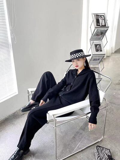 セットアップ韓国ファッションレディース春服肌にやさしいニットセットアップ2023人気新作上下二点セットカーディガントップスワイドパンツ福袋