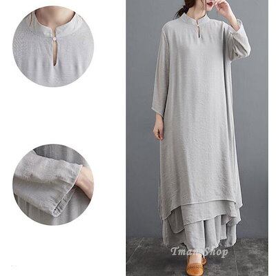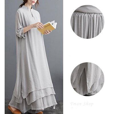 セットアップ 2点セット レディース ワンピース+ワイドパンツ 綿麻風ワンピース ロング丈 ワンピ セット ワイドパンツ 長袖 無地 おしゃれ 春夏 新作
