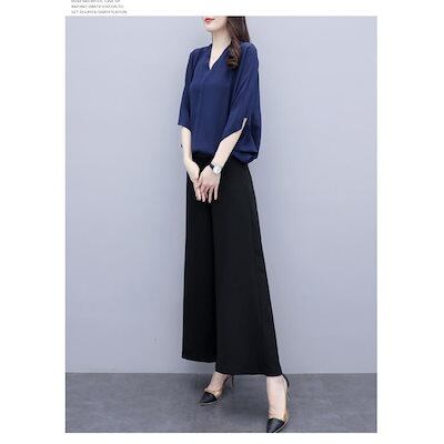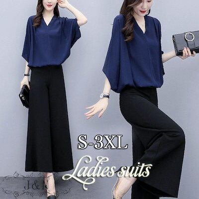 【新作セール】【即納 】春コーデ セットアップ レディース 春 夏 パンツスーツ ワイドパンツ 2点セット 入学式 七分袖 服 母 シフォン おしゃれ ママフォーマル