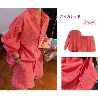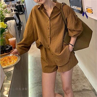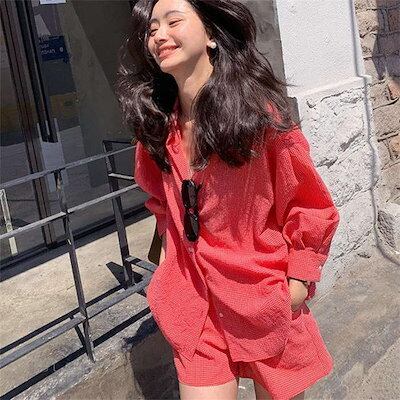 【新作セール】【即納 】セットアップ レディース カジュアル きれいめ 夏 春 ショートパンツ ショーツ シャツ ロングシャツ チェック柄 長袖 薄手 涼しい UVカット 上下セット ゆったり