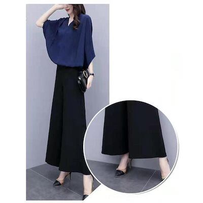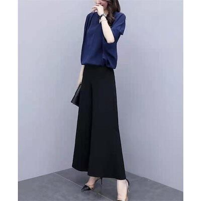 【GUANGYU】セットアップ パンツスーツ レディース 夏 春 シャツ ブラウス 5分袖 ロングパンツ ガウチョパンツ 着痩せ 体型カバー フォーマル お呼ばれ 通勤