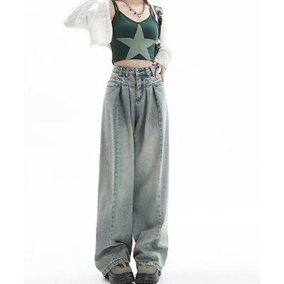 【GUANGYU】デニム ワイドパンツ 春 夏 秋 レディース 着やせ