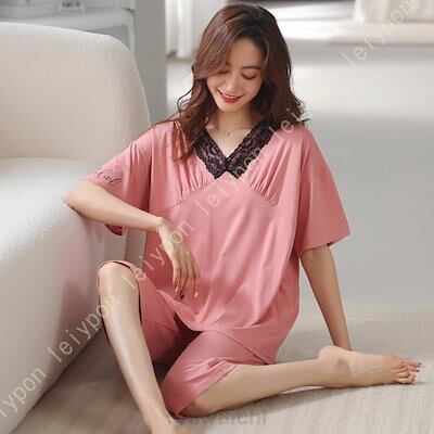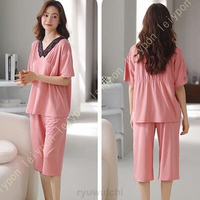 早い者勝ち レディース ルームウェア Vネック 綿 パジャマ 上下 2点セット 半袖 Tシャツ パンツ 大きいサイズ 春夏秋 可愛い ホームウェア トップス ズボン ゆったり 薄手