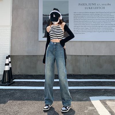 【3日以内出荷】脚長効果!デニムパンツ ハイウエスト ストレート ジーンズ レディース 2025春秋新作 ゆったり スリム ドレープ レトロ ワイドパンツ 床丈のズボン 韓国ファッション