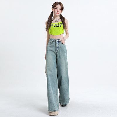 デニムかっこいい!スラックスパンツ2025春の新作レトロ デニムパンツ おしゃれ パンツ レディース ワイドレッグ 見えやせ ハイウエストゆったり 垂れ感