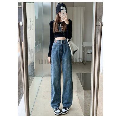 新作 ストレッチフィット ワイドデニムパンツ レディース 進化形 体型カバー ボトムス ジーパン 細身 ゆったり 韓国ファッション