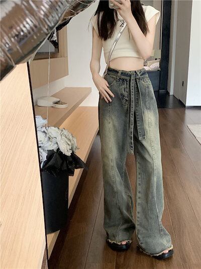デニムパンツ ジーンズ レディース 2025新作 ハイウエストルーズ生エッジパンツ デニムワイドパンツ