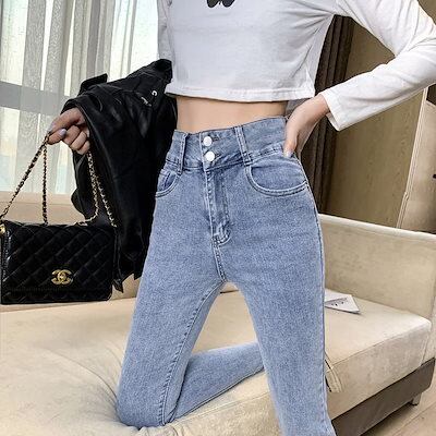 脚長効果!スキニーデニムパンツ2024春秋学生向け新作ハイウエストジーンズスキニーパンツ韓国