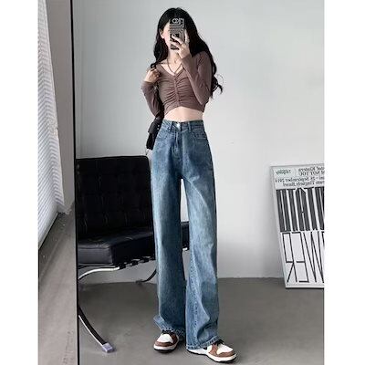 スラックスパンツ ジーンズ レディース 夏の薄いセクション 2024年新作 ハイウエスト 薄手 ゆったり ドレープ ワイドパンツ 韓国