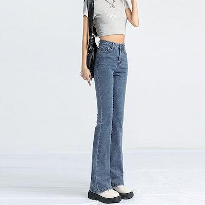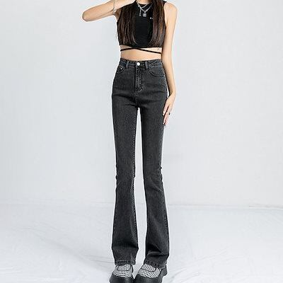 デニムパンツ アメリカンスタイル レトロ ジーンズ 春秋新作 レディース ハイウエスト 薄手 小さい フレアパンツ ホースシューパンツ 韓国