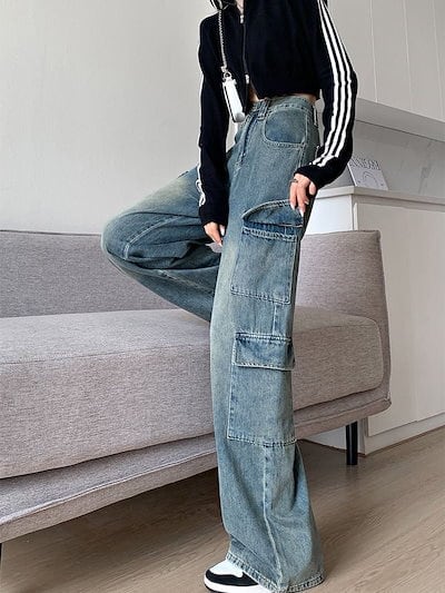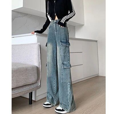 デニムパンツ ワークウェア ジーンズ レディース 新作 ゆったり ハイウエスト ストレート ワイドパンツ デニムパンツ