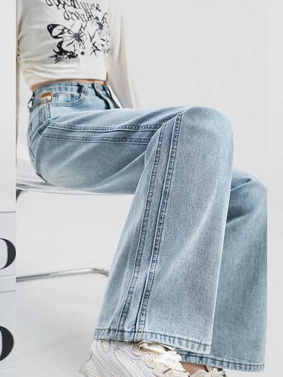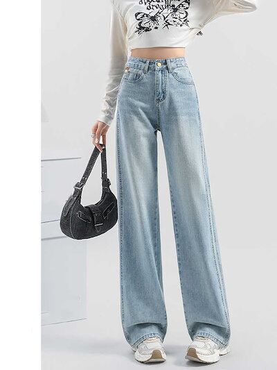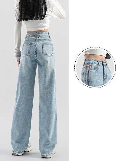 ハイウエスト 切り替え ストレート ジーンズ 春夏新作 レディース スリミング 着痩せ ワイドパンツ カジュアル ロングズボン