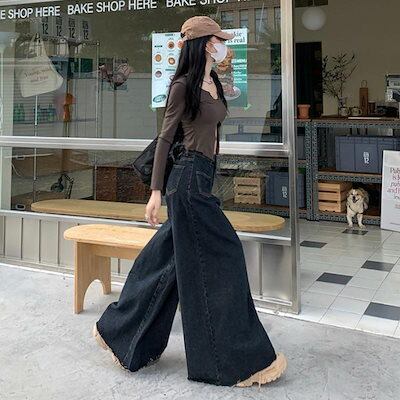 デニムパンツ ワイドパンツ デニム レディース バギー フレア 韓国ファッション ジーンズ Gパン ズボン 20代 30代 40代 50代
