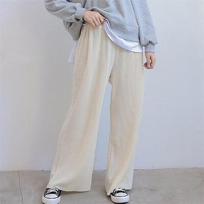 ワイドパンツ 春 夏 秋 レディース プリーツパンツ スカート風 ロング丈 セルフカット バギーパンツ カジュアル リラックス ゆったり 無地 ルームウエア