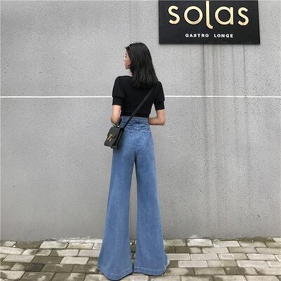 デニム バギーパンツ レディース 韓国ファッション 脚長効果 ワイドシルエット ロングパンツ