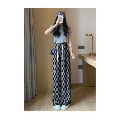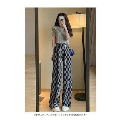 ワイドパンツ 春 夏 秋 レディース チェック柄 イージーパンツ 薄手 夏 サマーパンツ ゆったり 体型カバー バギーパンツ ウエストゴム カジュアルパンツ