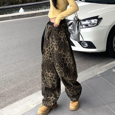 バギー ワイドパンツ テーパード レオパード 豹 総柄 オラオラ レディース 男女兼用 メンズ ジェンダーレス ダボパン インパクト 派手 ダンス