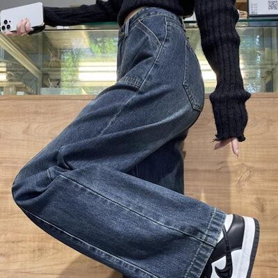 デニムパンツ ロングパンツ ワイド バギー ポケット ストレート レディース 韓国ファッション シンプル 大きいサイズ XXL 体型カバー シンプル