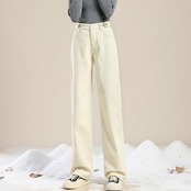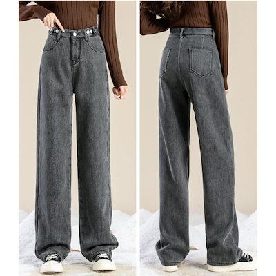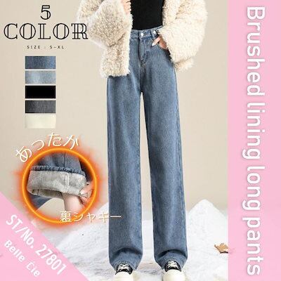 裏シャギー デニムパンツ ジーパン レディース 裏起毛 ジーンズ ワイドパンツ ゆったり ワイド ストレート バギー ハイウエスト パンツ 裏ボア