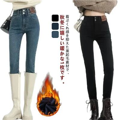 3月新品(大セール)デニムパンツ 裏起毛 スキニーパンツ レディース ストレッチ あったかパンツ 厚手 防寒 暖かい ジーンズ 美脚 保温 スキニーデニム 大きいサイズ ハイウェスト スリム 細身 タ